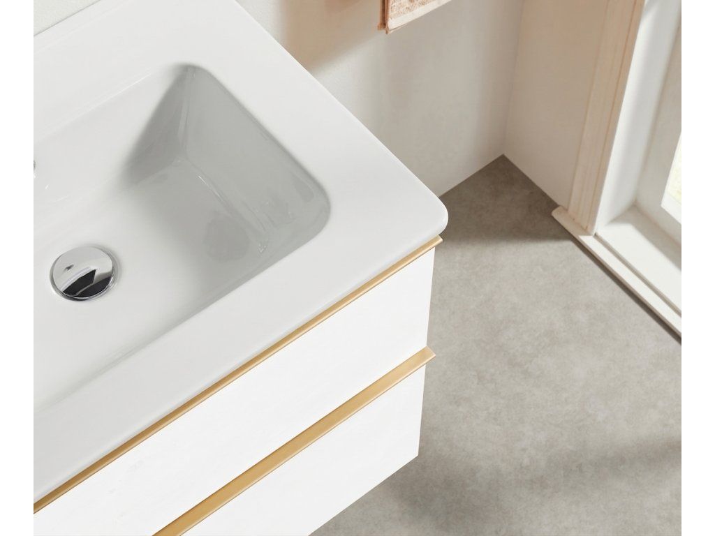 CERANO - Szafka łazienkowa Velora - matowa biel, złoty uchwyt + umywalka ceramiczna Novo - połysk biały - 121x54,5x46,5 cm