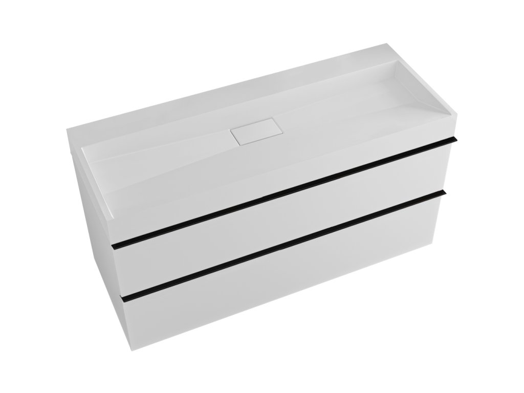CERANO - Szafka łazienkowa Velora - matowa biel - czarny uchwyt + Umywalka z lanego marmuru Vita - matowa biel - 100x53x46 cm