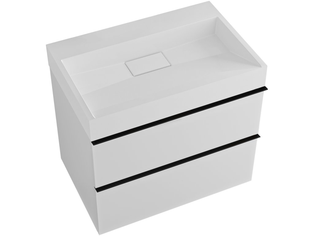 CERANO - Szafka łazienkowa Velora - matowa biel - czarny uchwyt + Umywalka z lanego marmuru Vita - połyskliwa biel - 70x53x46 cm