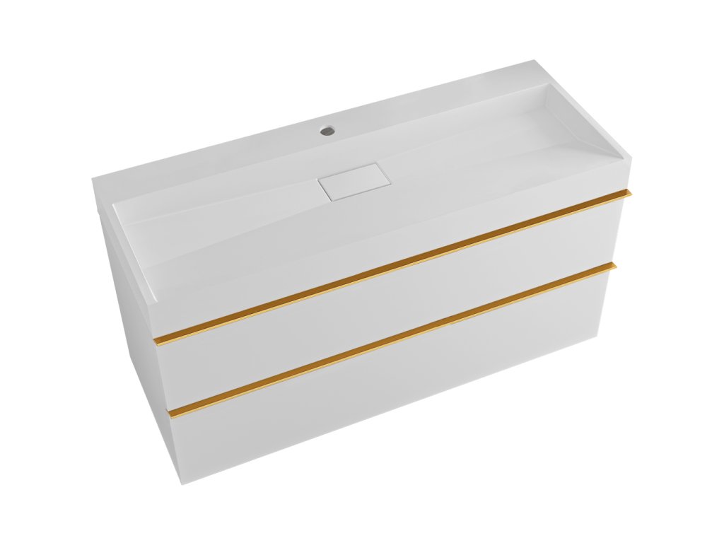 CERANO - Szafka łazienkowa Velora - matowa biel - złoty uchwyt + umywalka z otworem na baterię z lanego marmuru Vita - połysk biały - 100x53x46 cm