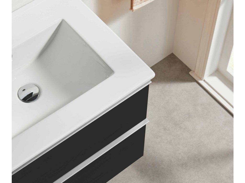 CERANO - Szafka łazienkowa Velora - matowa czerń, chromowany uchwyt + umywalka ceramiczna Todo - 101x55x46,5 cm