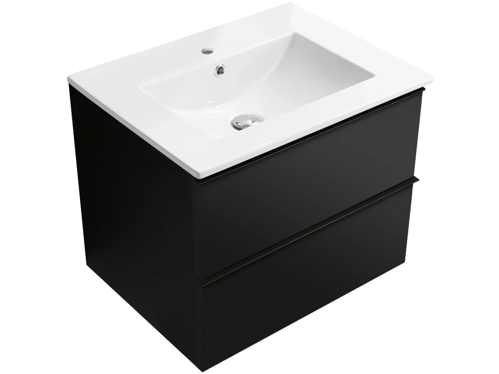 CERANO - Szafka łazienkowa Velora - matowa czerń, czarny uchwyt + umywalka ceramiczna Todo - 71x55x46,5 cm