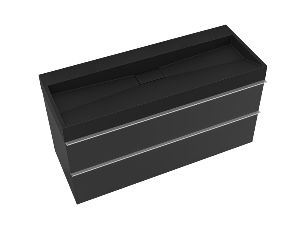 CERANO - Szafka łazienkowa Velora - matowa czerń - chromowany uchwyt + umywalka z lanego marmuru Vita - czarna - 100x53x46 cm
