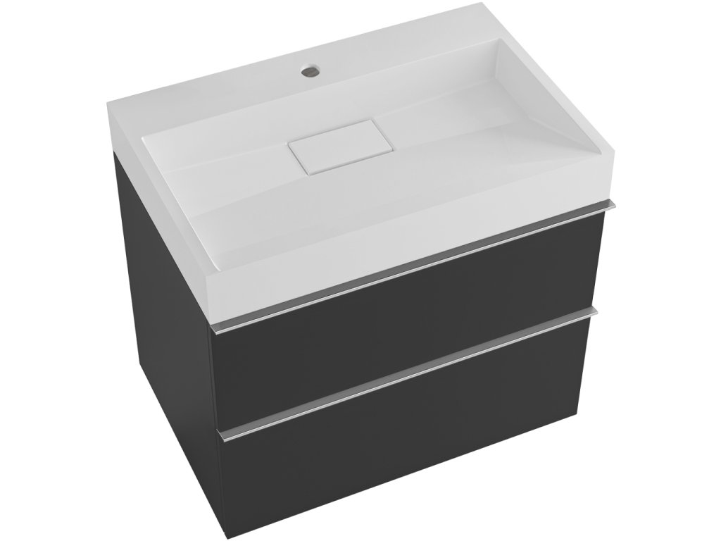 CERANO - Szafka łazienkowa Velora - matowa czerń - chromowany uchwyt + umywalka z otworem na baterię z lanego marmuru Vita - połysk biały - 70x53x46 cm