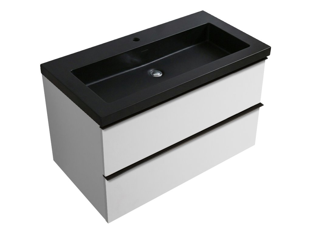 CERANO - Szafka łazienkowa Velora - matowa czerń - czarny uchwyt + Umywalka ceramiczna Ovo - matowa biel - 79x53x46 cm