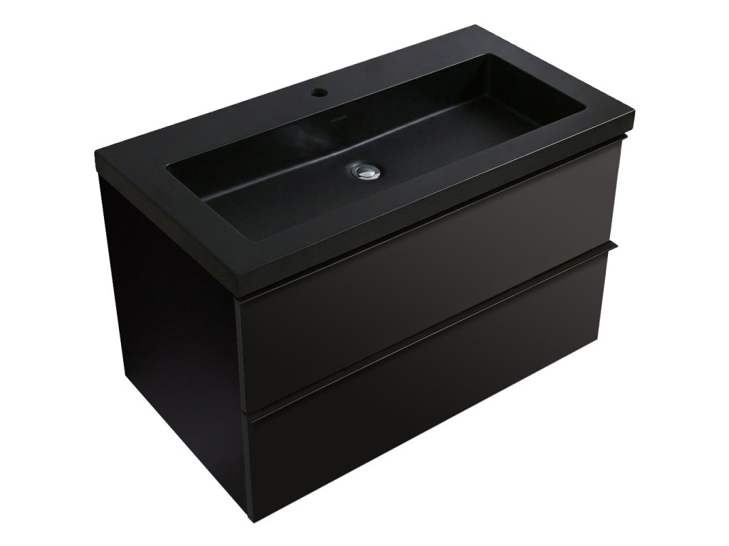 CERANO - Szafka łazienkowa Velora - matowa czerń - czarny uchwyt + Umywalka ceramiczna Ovo - matowa czerń - 99x53x46 cm