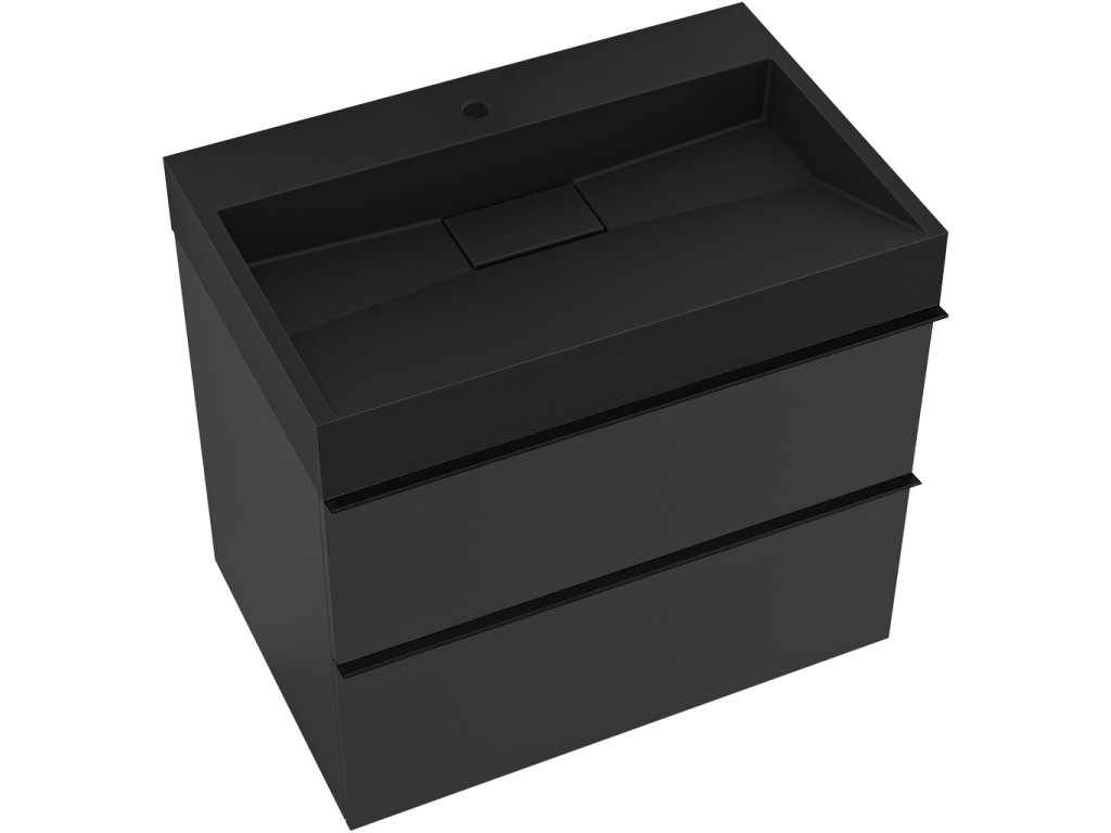 CERANO - Szafka łazienkowa Velora - matowa czerń - czarny uchwyt + umywalka z otworem na baterię z lanego marmuru Vita - czarna - 70x53x46 cm