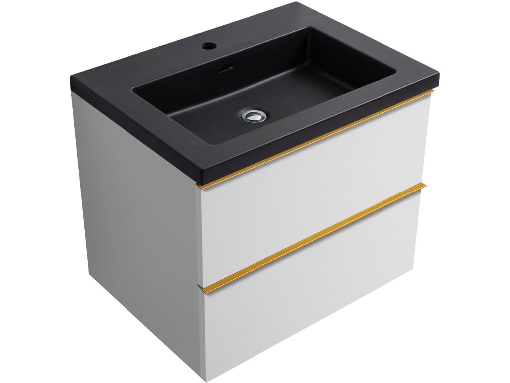 CERANO - Szafka łazienkowa Velora - matowa czerń - złoty uchwyt + Umywalka ceramiczna Ovo - matowa biel - 69x53x46 cm