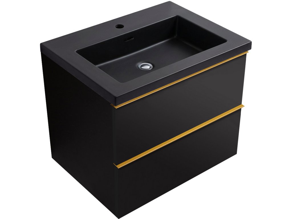CERANO - Szafka łazienkowa Velora - matowa czerń - złoty uchwyt + Umywalka ceramiczna Ovo - matowa czerń - 59x53x46 cm