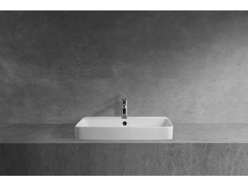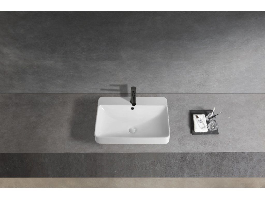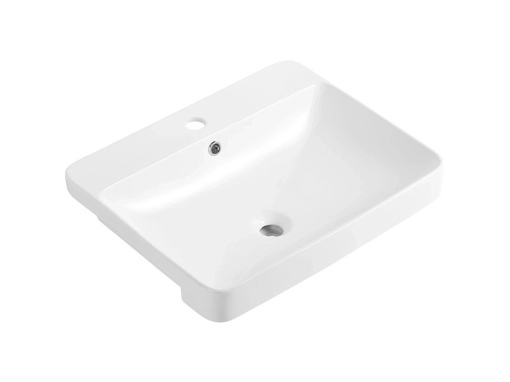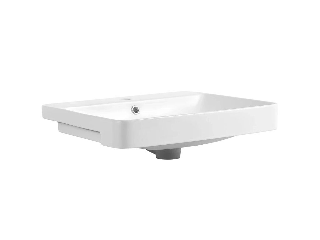 CERANO - Umywalka ceramiczna - półwpuszczana - Ravelo - biała połysk - 59,5 x 47,5 cm