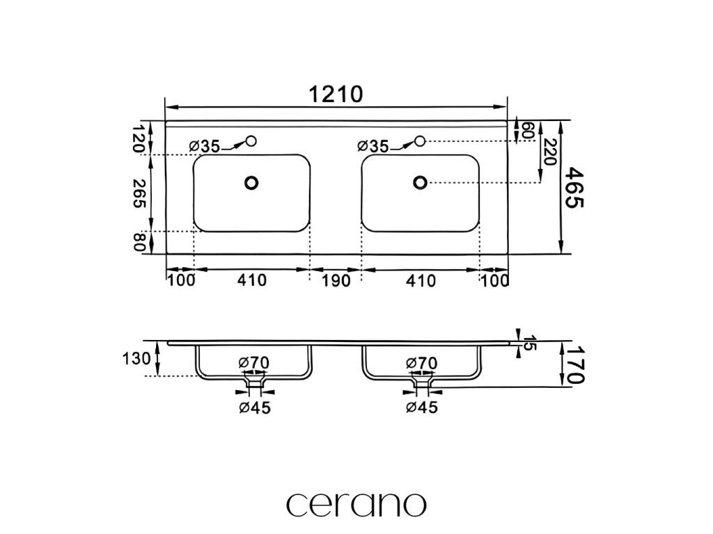 CERANO - Podwójna umywalka ceramiczna Novo - meble - połysk biały - 121x46,5 cm