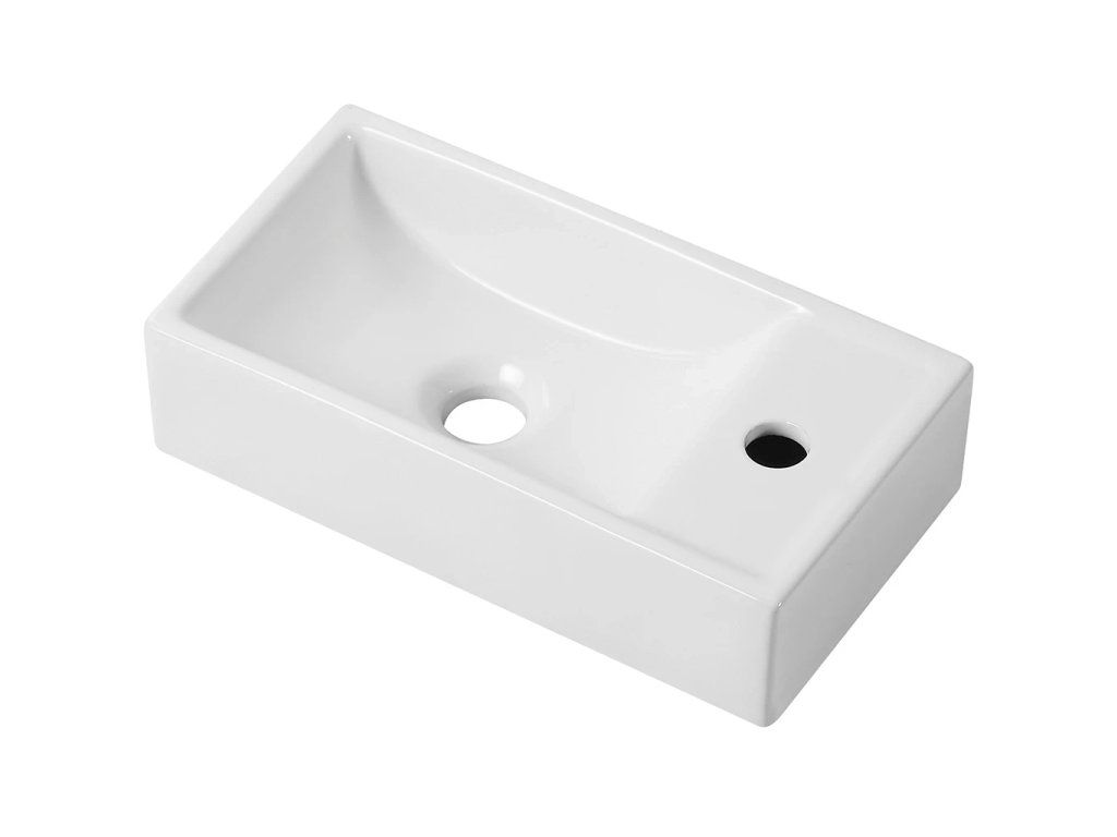 CERANO - Umywalka ceramiczna Giovanni, ścienna prawa - połysk biały - 41x22,5 cm