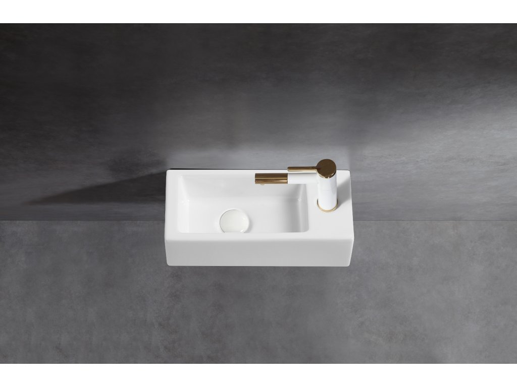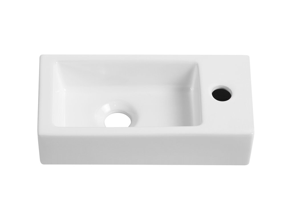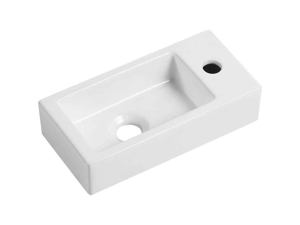 CERANO - Umywalka ceramiczna Roberto, ścienna prawa - biała połysk - 37,7x18,5 cm