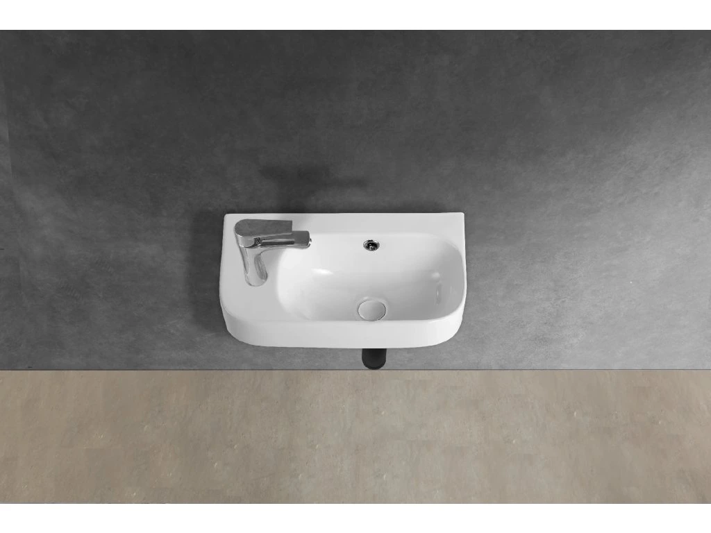 CERANO - Umywalka ceramiczna - ścienna - Arco - lewa - biała połysk - 45x25 cm