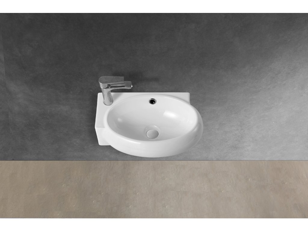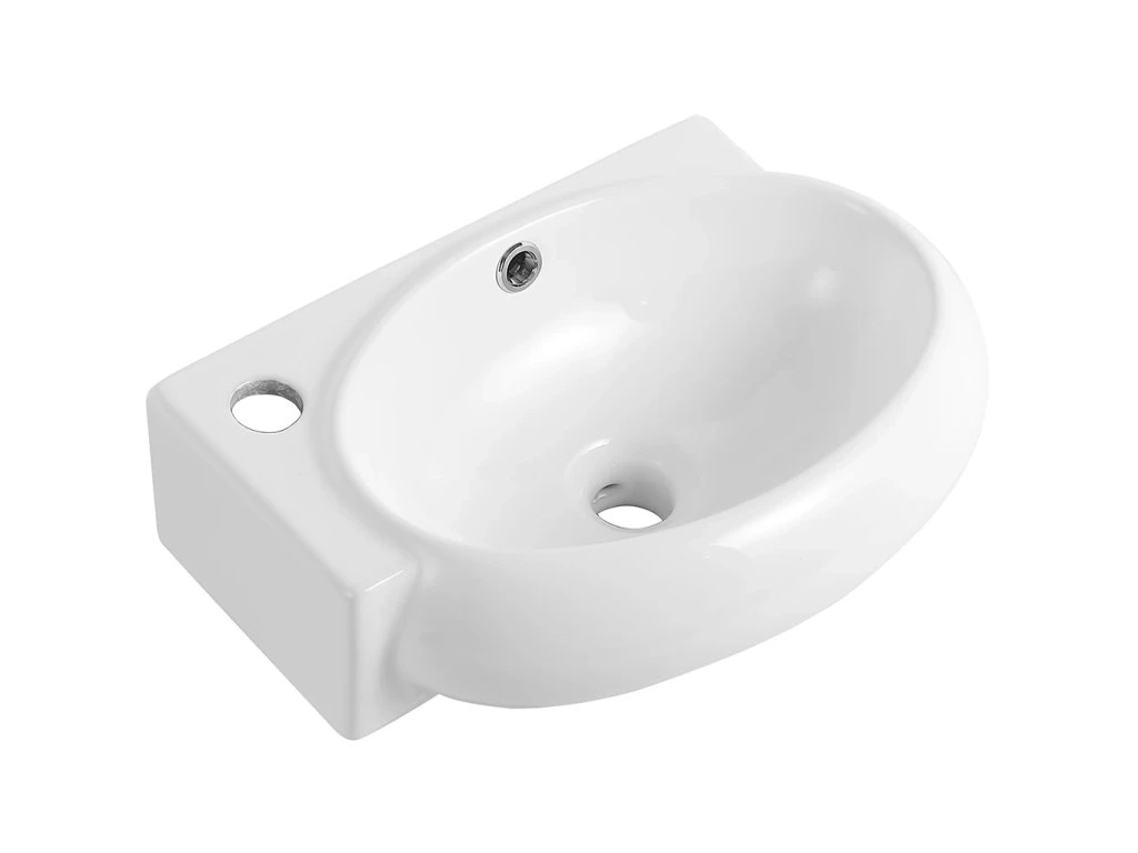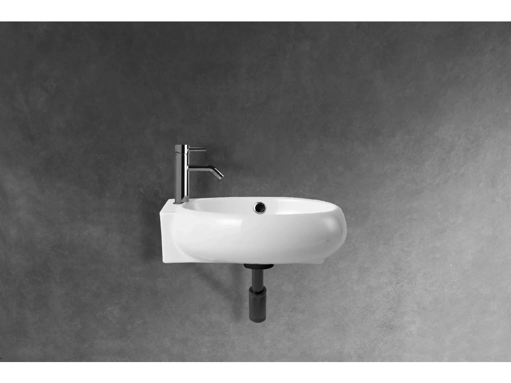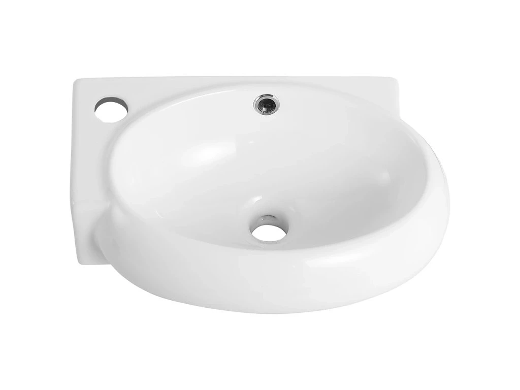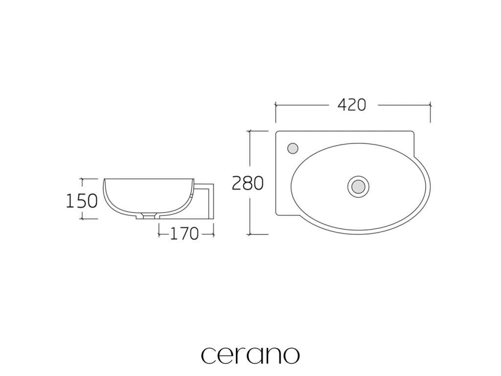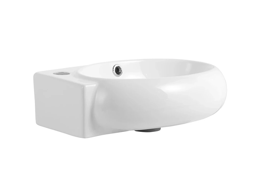 CERANO - Umywalka ceramiczna - ścienna - Avorio - lewa - biała połysk - 42x28 cm