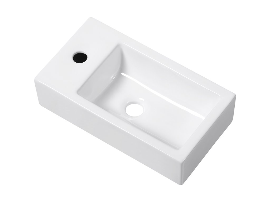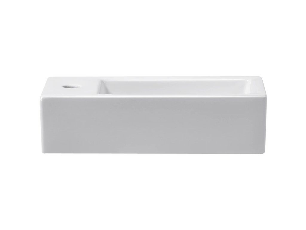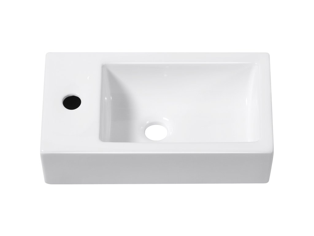 CERANO - Umywalka ceramiczna Vivo - wisząca lewa - biała połysk - 45,5 x 25 cm