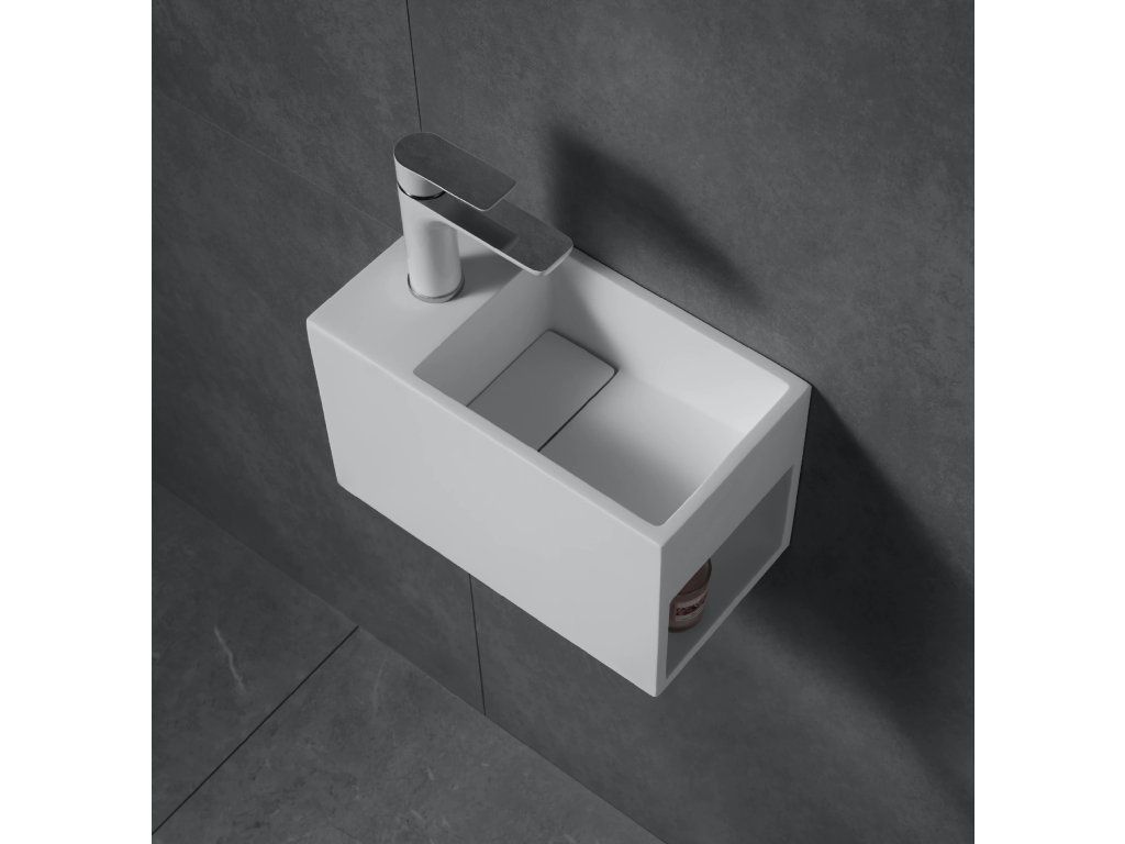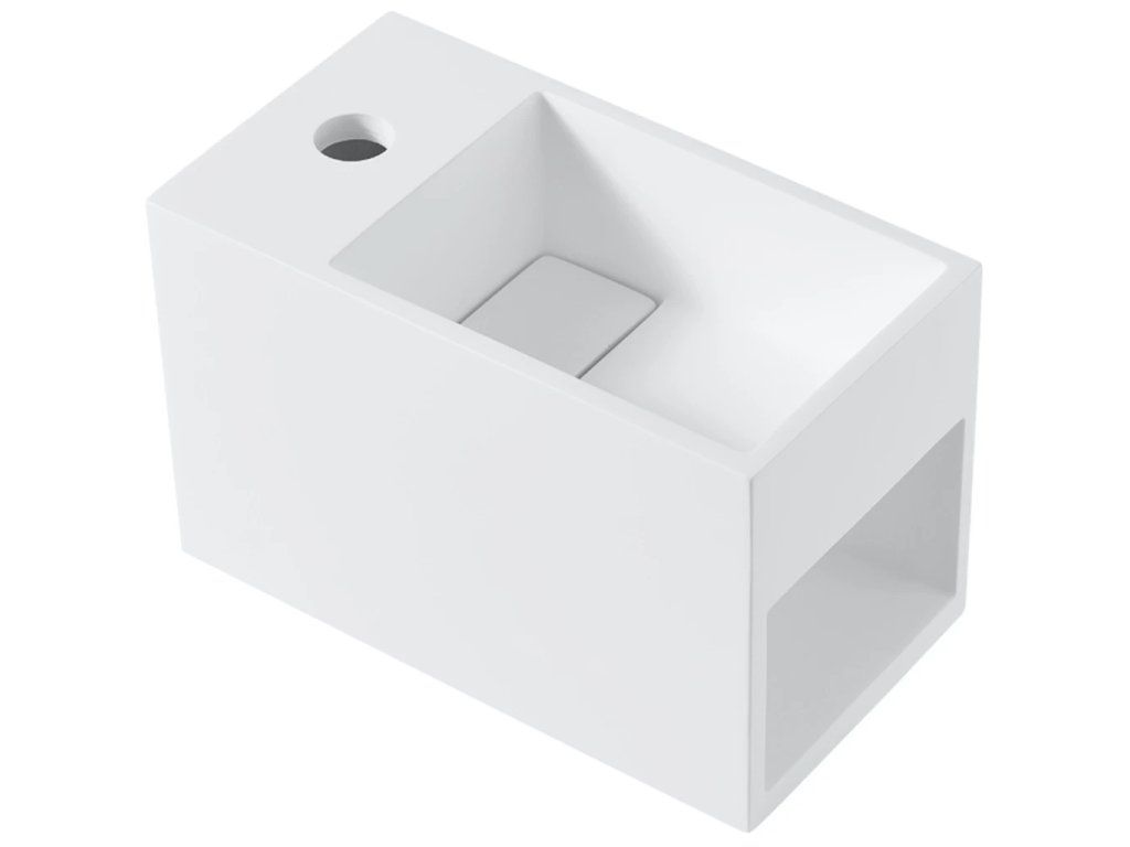 CERANO - Umywalka ścienna Zeno z odlewanego marmuru, lewa - biały mat - 33x18 cm