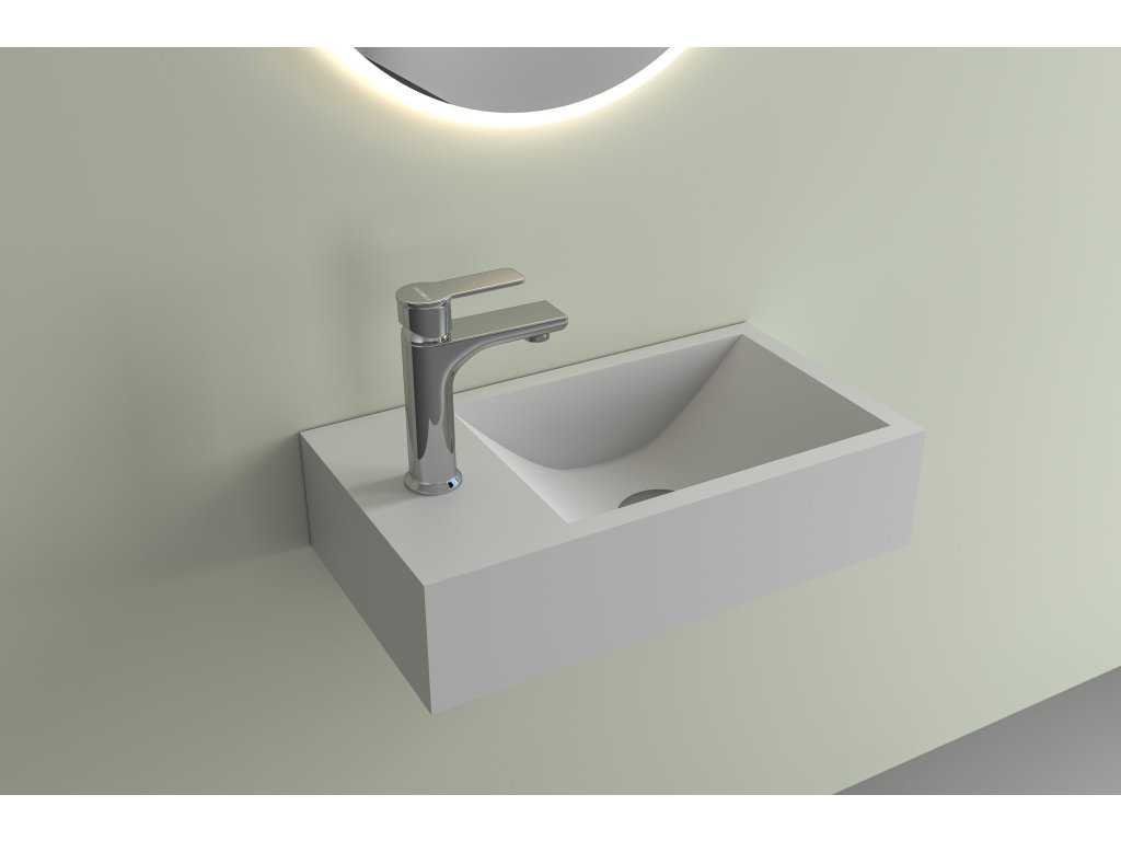 CERANO - Umywalka z marmuru odlewanego Teo - wisząca lewa - biały mat - 40x22 cm