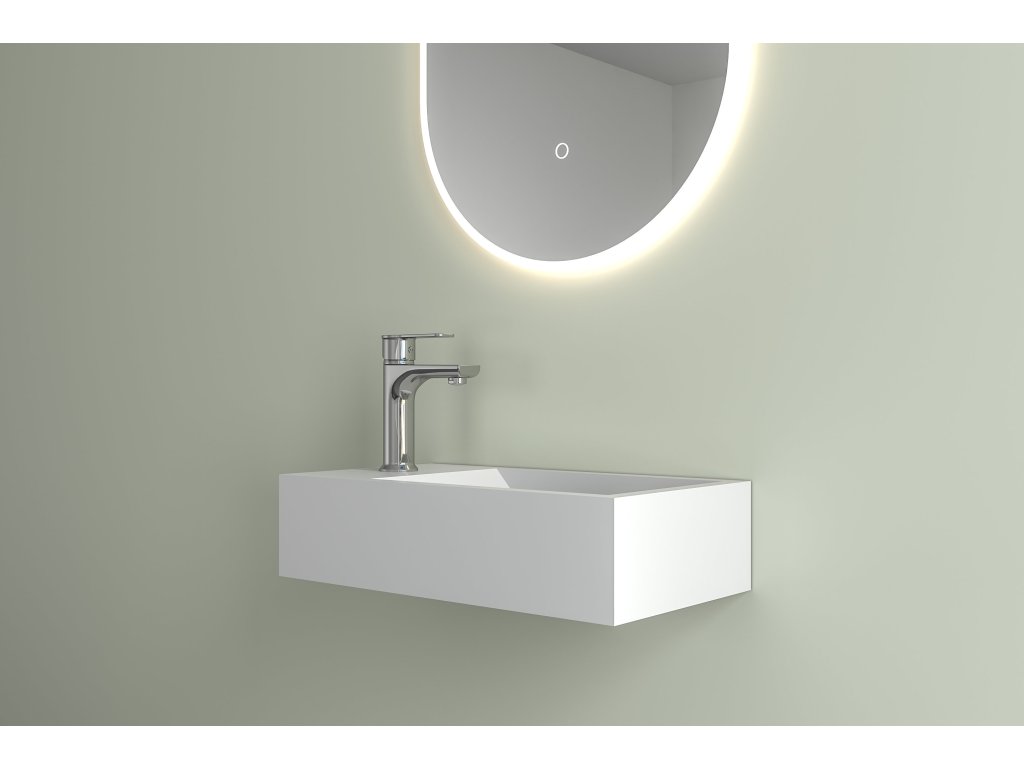Umywalka posiada otwór na baterię. Taka konstrukcja pozwala na eleganckie wbudowanie baterii bezpośrednio w umywalkę, co jest idealne w mniejszych łazienkach, ponieważ pozwala zaoszczędzić miejsce. Jednocześnie ułatwia utrzymanie czystości wokół umywalki, ponieważ nie ma wystających elementów ani łączeń, w których mógłby gromadzić się brud.