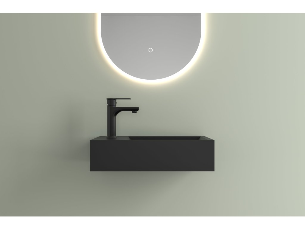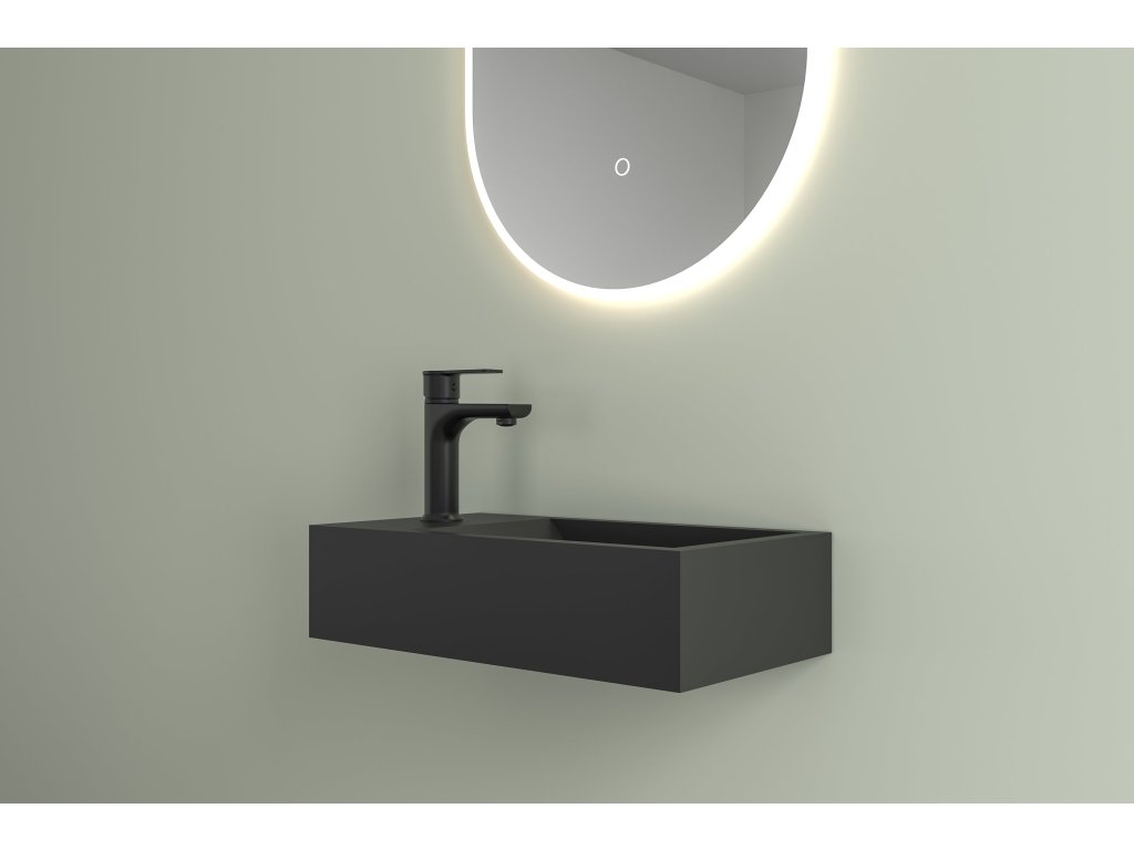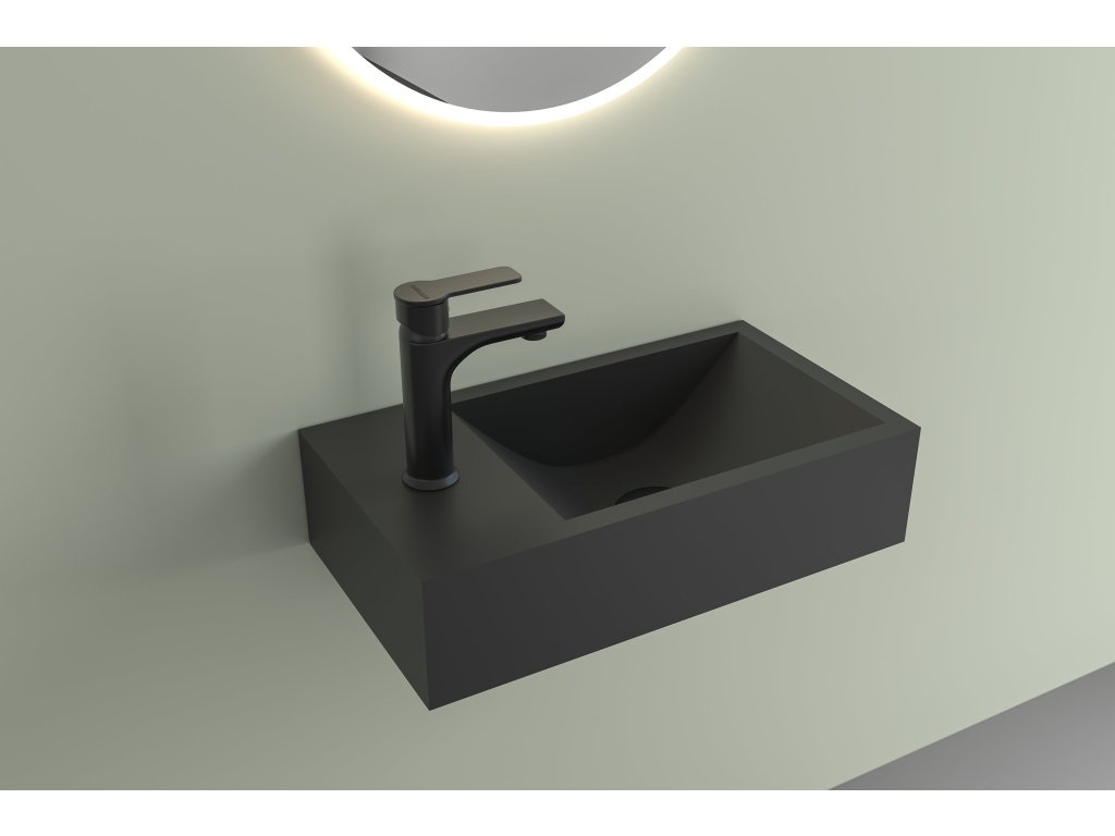 CERANO - Umywalka z marmuru odlewanego Teo - wisząca lewa - czarny mat - 40x22 cm