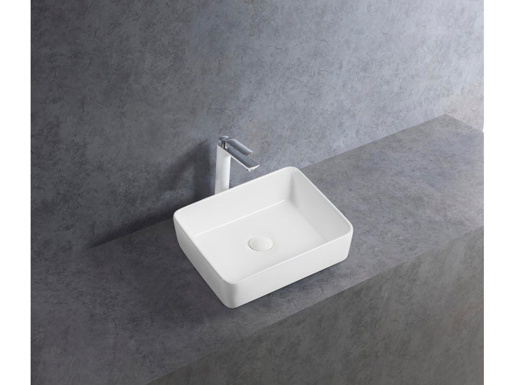 CERANO - Umywalka ceramiczna Lorenzo - nablatowa - połysk biały - 48x37 cm
