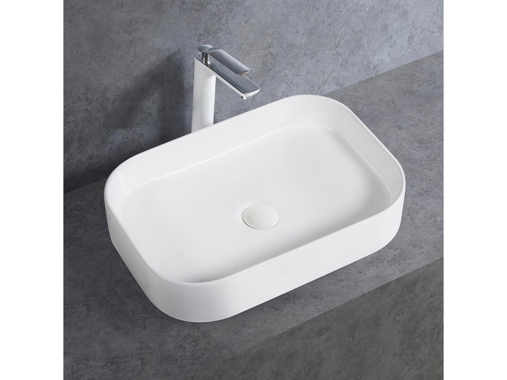 CERANO - Umywalka ceramiczna Matteo - blat - biały połysk - 55,5x38 cm