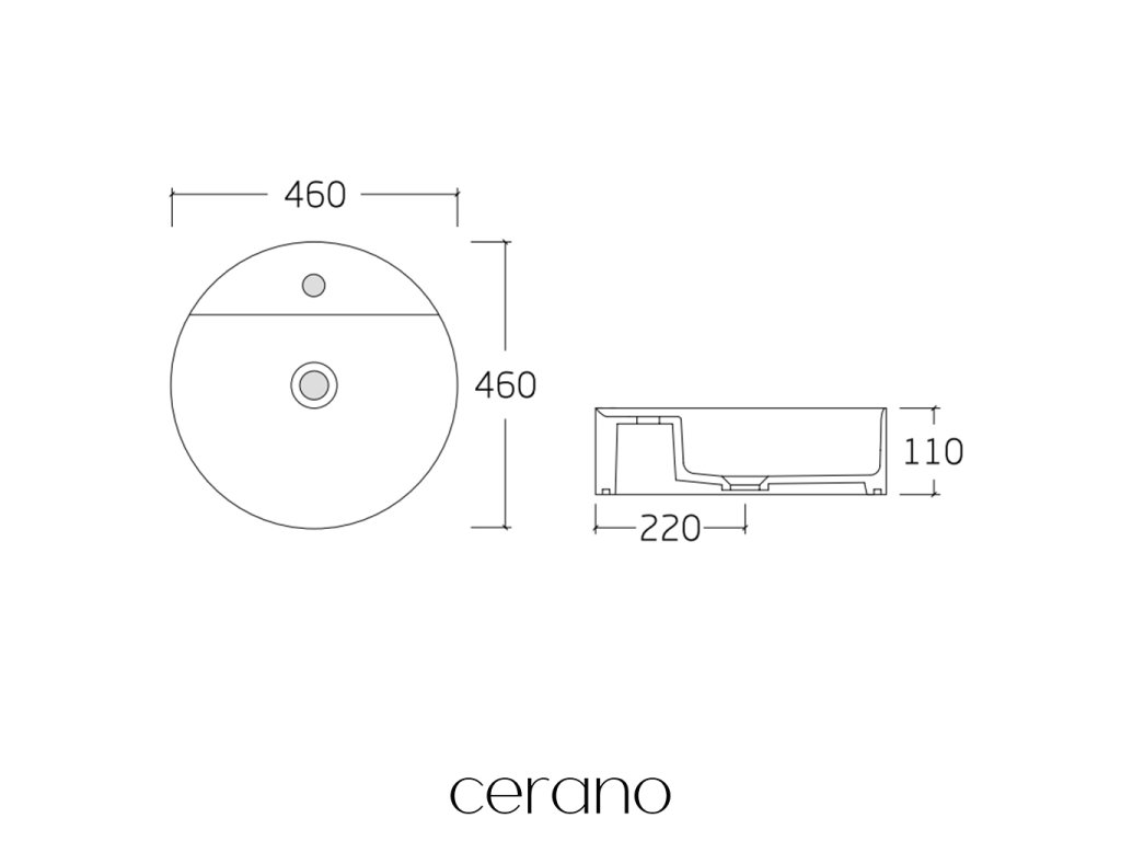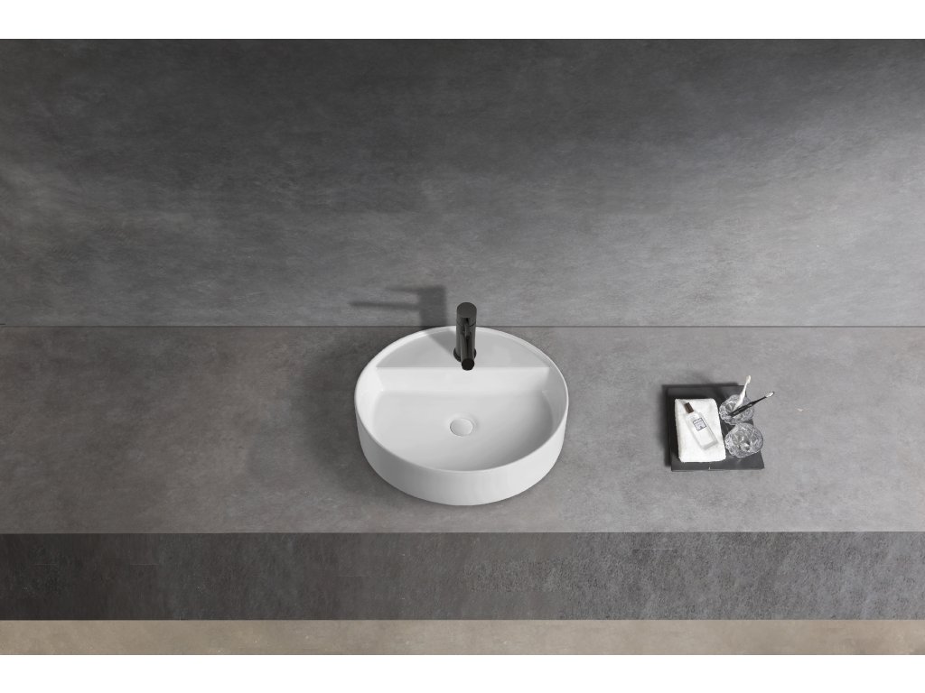 CERANO - Umywalka ceramiczna nablatowa - Lario - połysk biały - Ø 46 cm