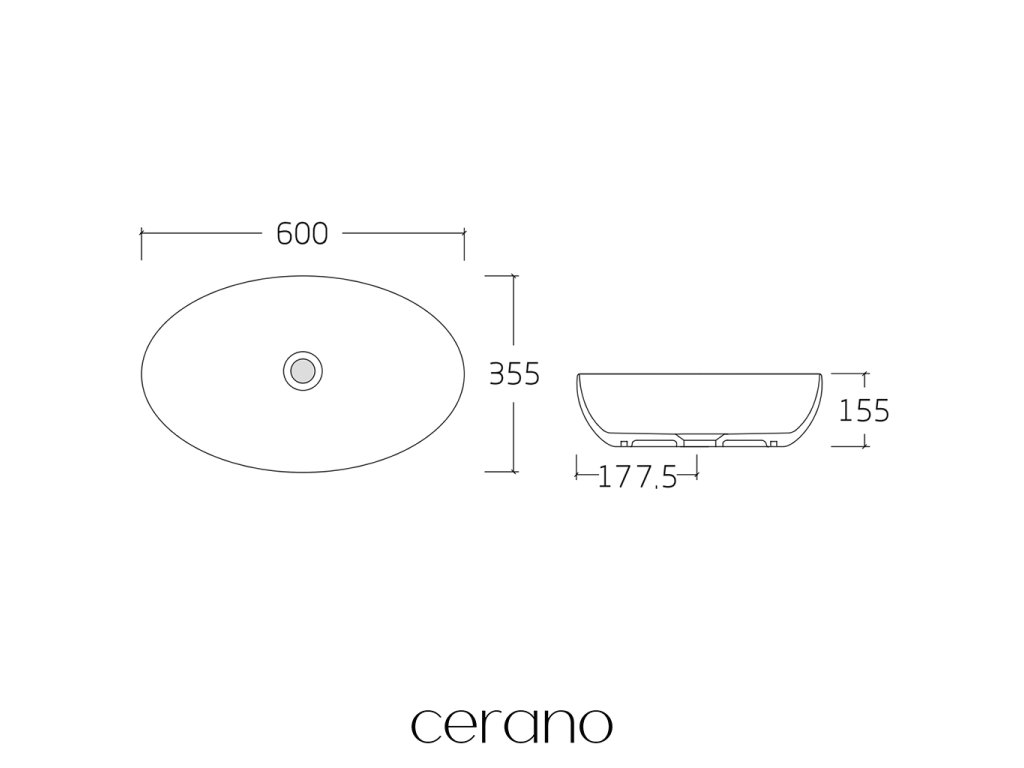 CERANO - Umywalka ceramiczna Playa - nablatowa - połysk biały - 60x35,5 cm