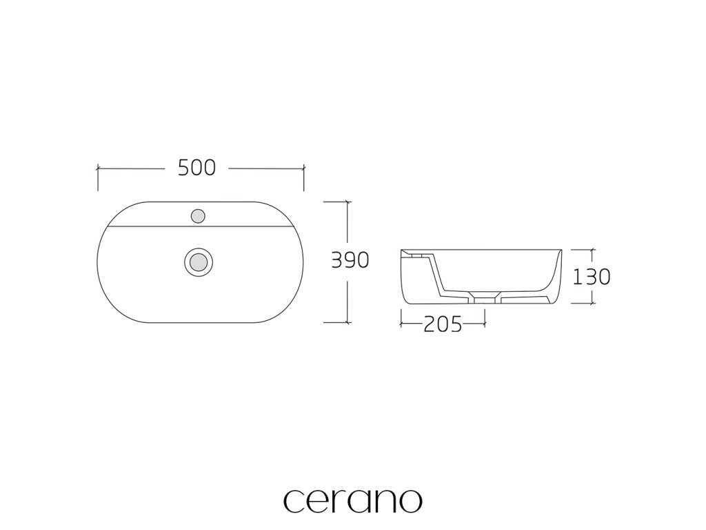 CERANO - Umywalka ceramiczna Ramona - nablatowa - połysk biały - 50x39 cm