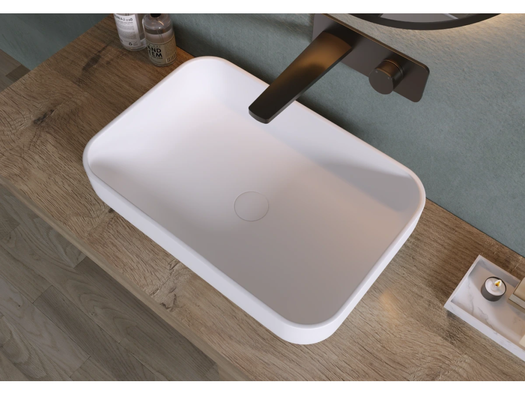 CERANO - Umywalka z lanego marmuru Ora - blat - biały mat - 54x36 cm
