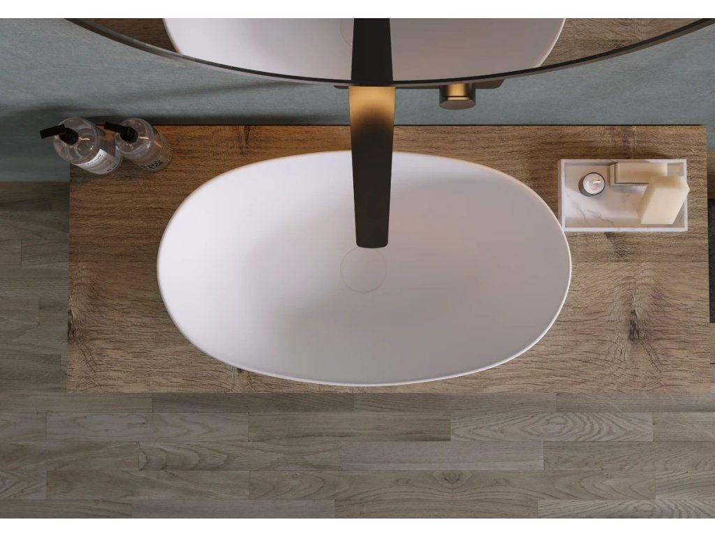 Matowa powierzchnia umywalek nie odbija światła, co zapewnia spokojniejszą i bardziej relaksującą atmosferę, a jednocześnie subtelny, a zarazem elegancki design. Powierzchnia ta jest praktyczna, ponieważ odciski palców i zacieki z wody nie są na niej tak widoczne, co znacznie ułatwia późniejszą konserwację i utrzymanie jej w czystości.