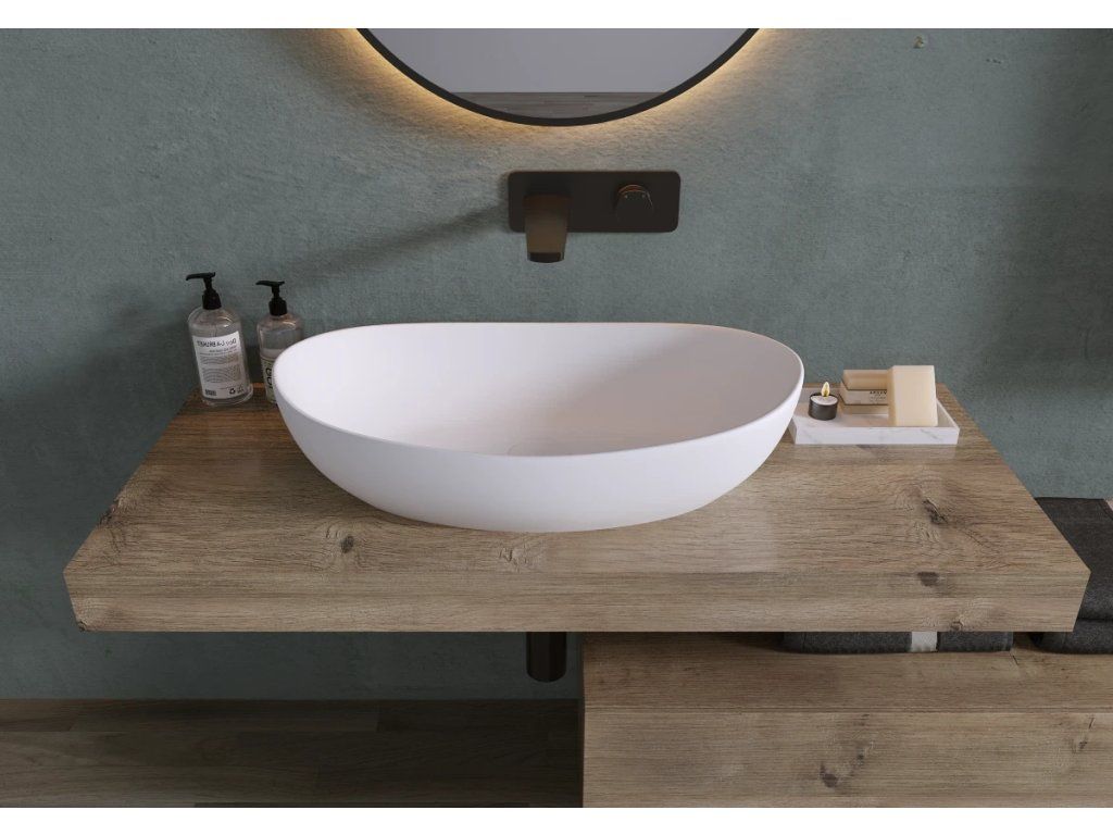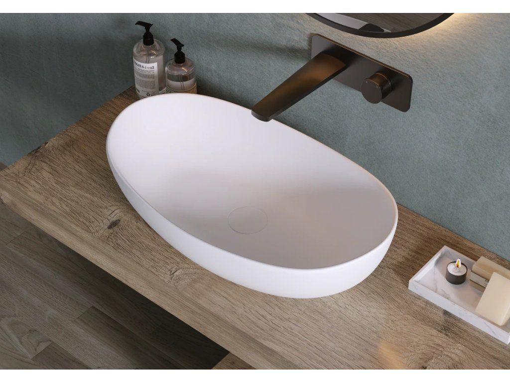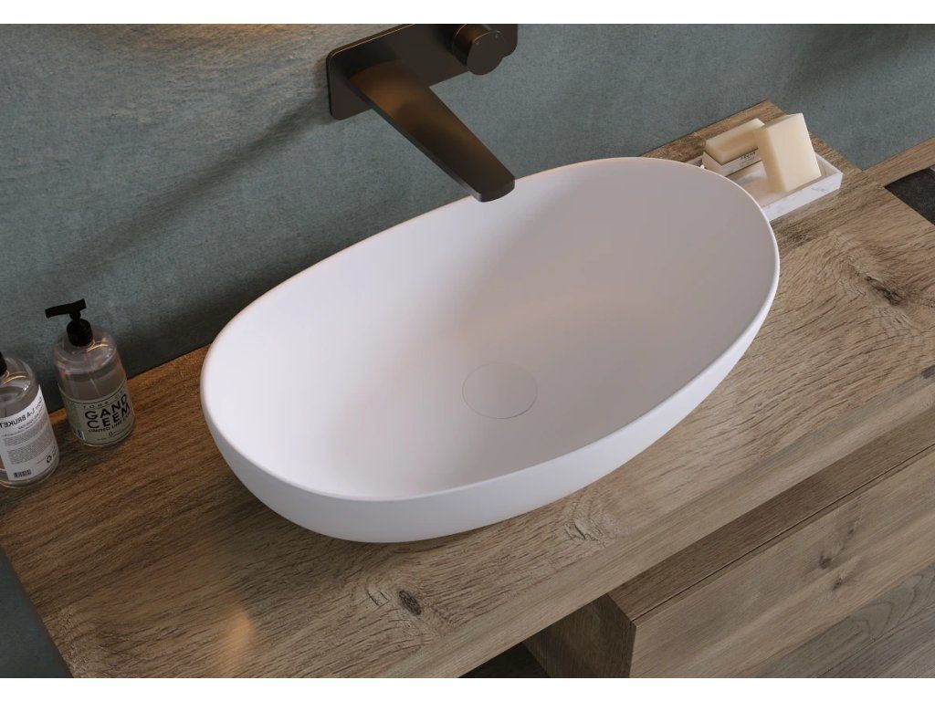 CERANO - Umywalka z lanego marmuru Persea - blat - biały mat - 50x32 cm