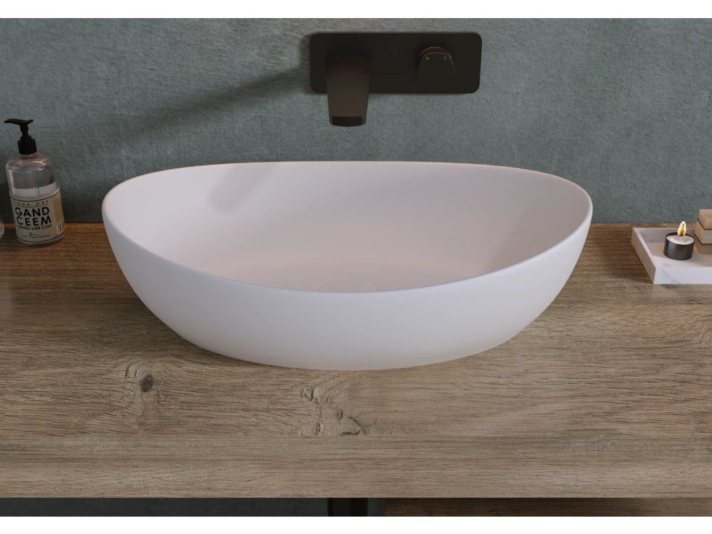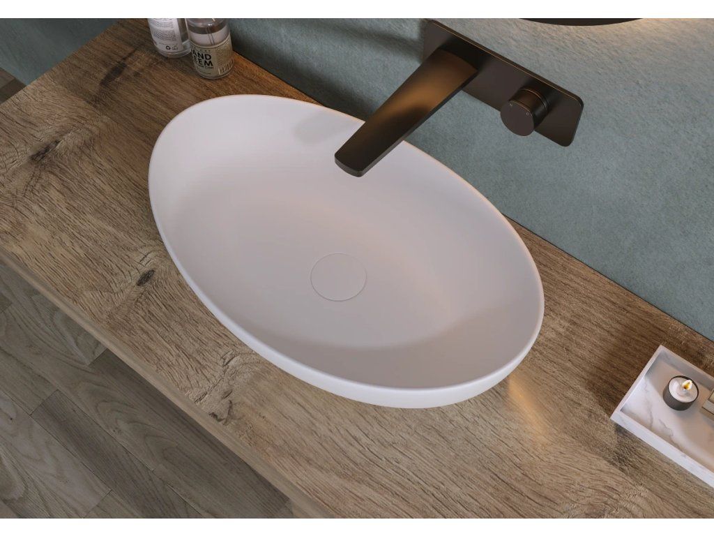 Matowa powierzchnia umywalek nie odbija światła, co zapewnia spokojniejszą i bardziej relaksującą atmosferę, a jednocześnie subtelny, a zarazem elegancki design. Powierzchnia ta jest praktyczna, ponieważ odciski palców i zacieki z wody nie są na niej tak widoczne, co znacznie ułatwia późniejszą konserwację i utrzymanie jej w czystości.