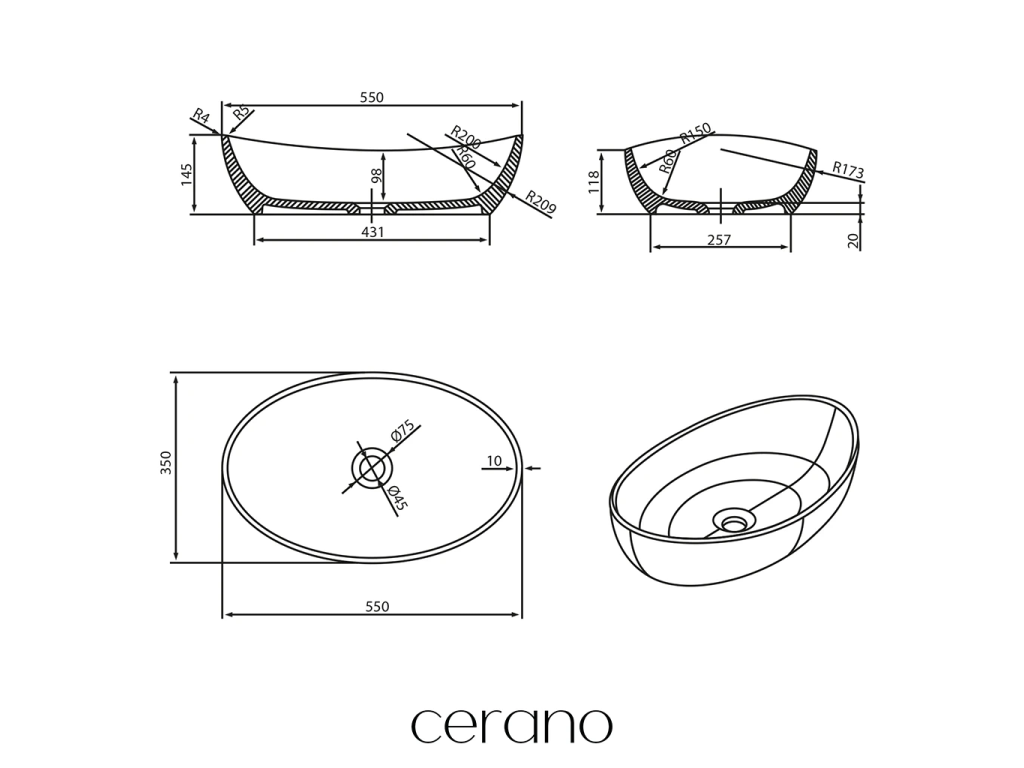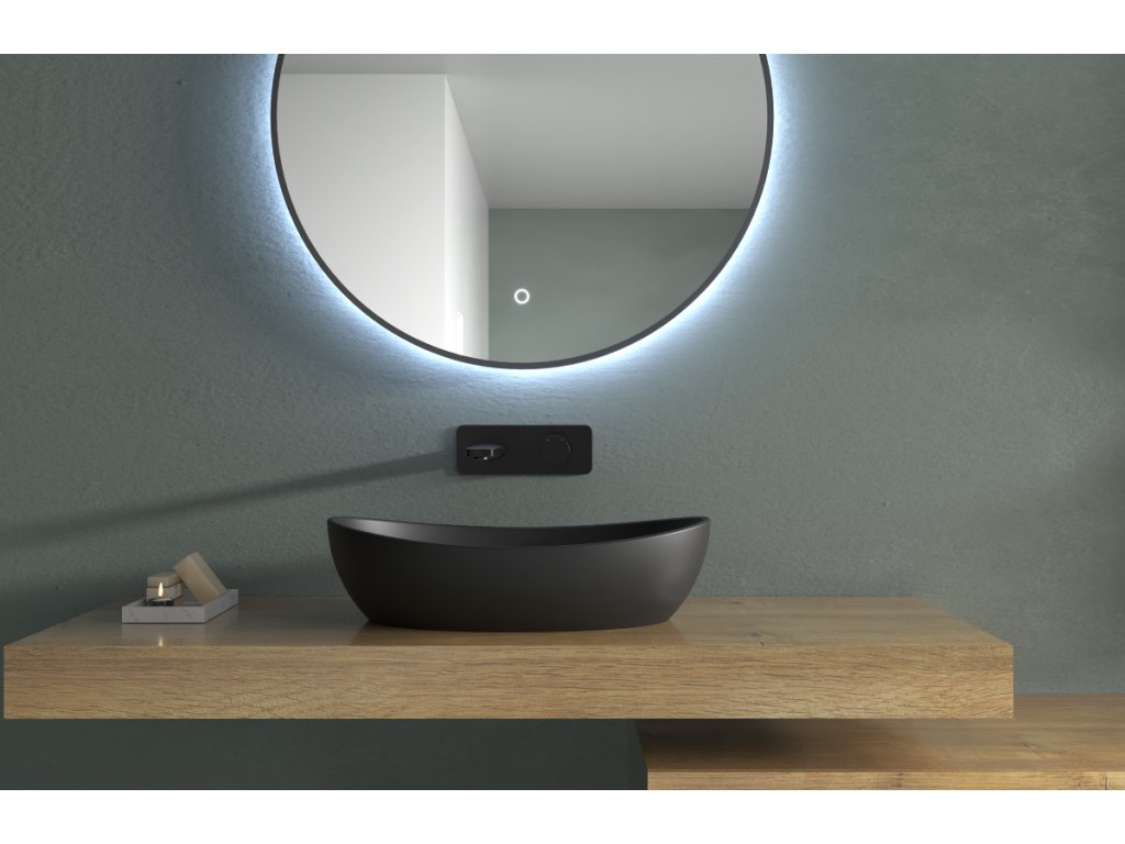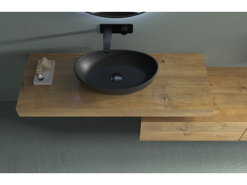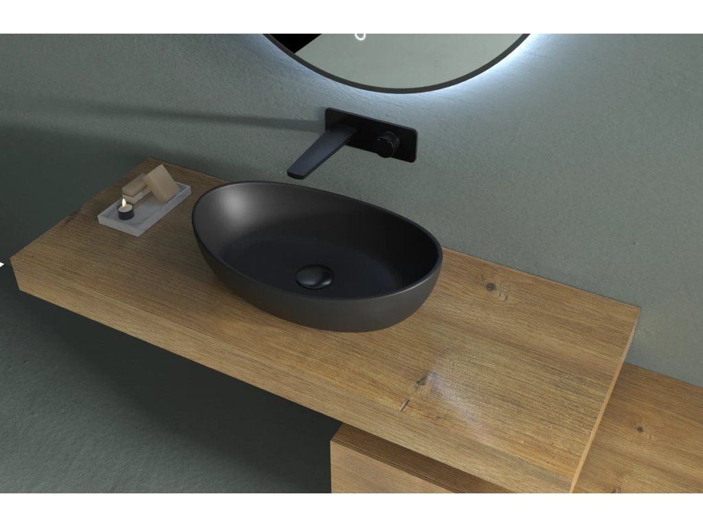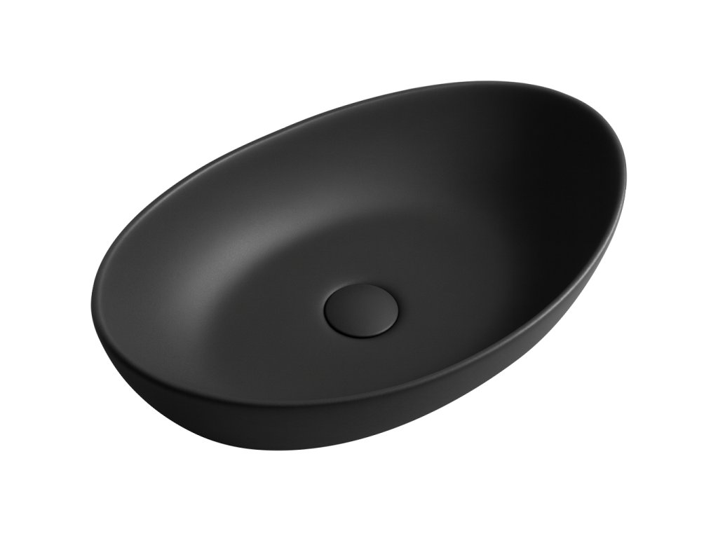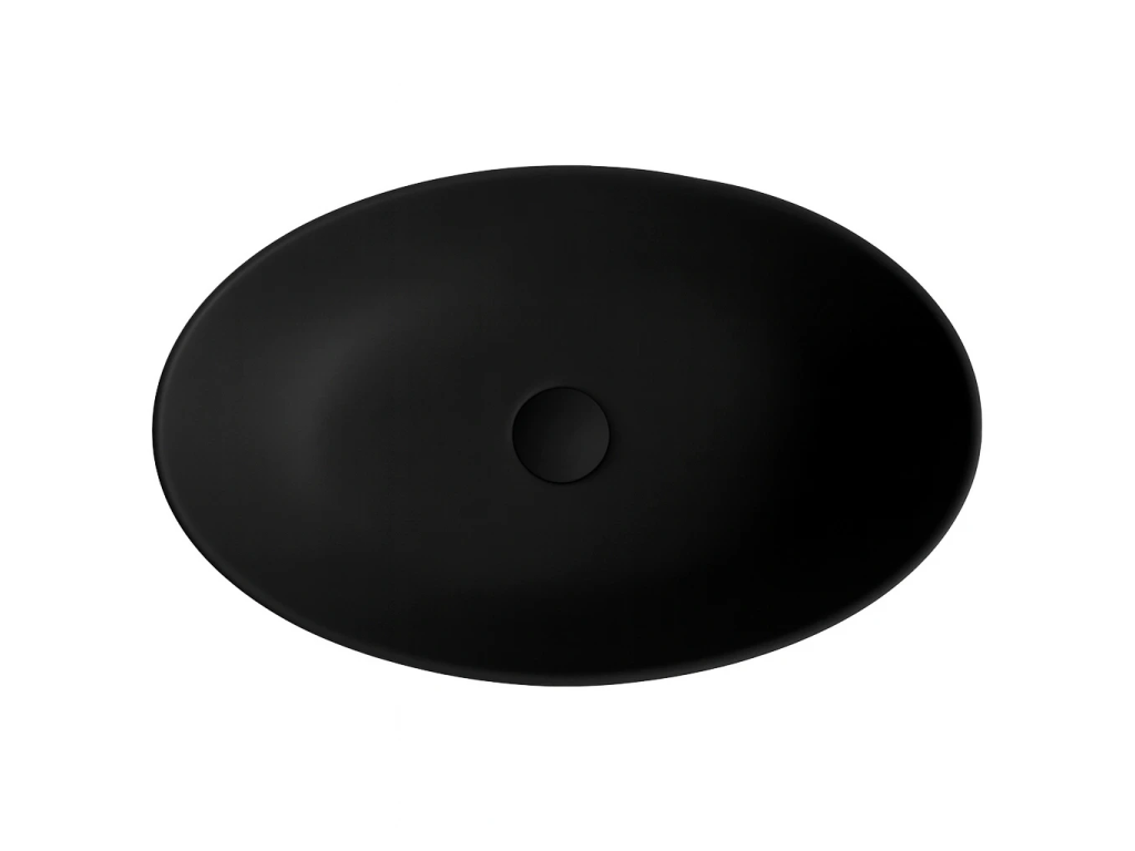 CERANO - Umywalka z marmuru odlewanego Gaia - blat - czarny mat - 55x35 cm