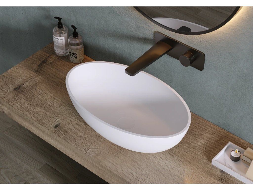 CERANO - Umywalka z marmuru odlewanego Luna - blat - biały mat - 52,8x30,9 cm