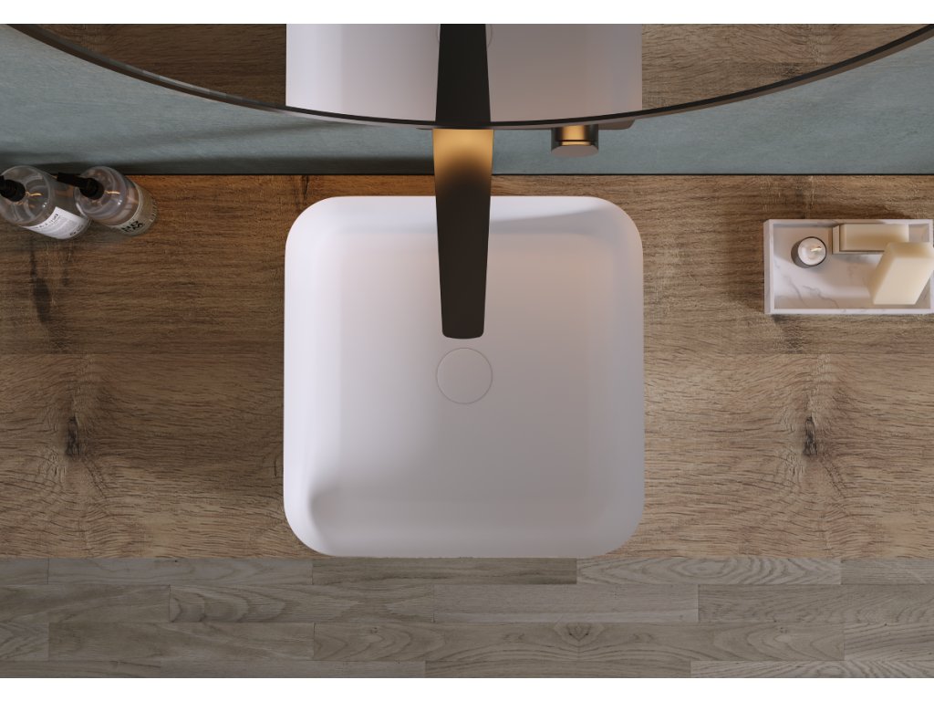CERANO - Umywalka z marmuru odlewanego Viva - blat - biały mat - 40x40 cm