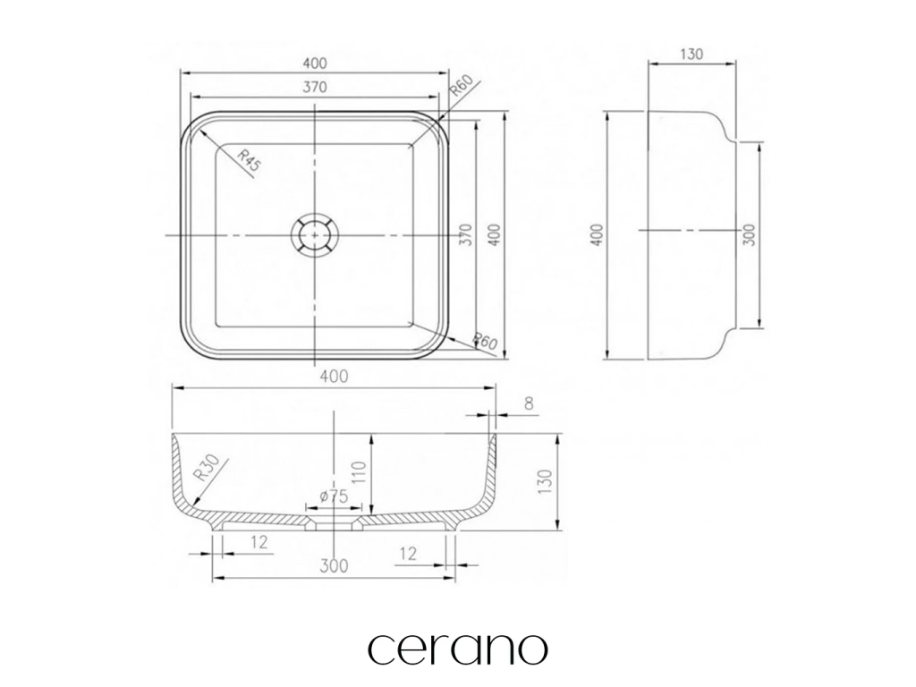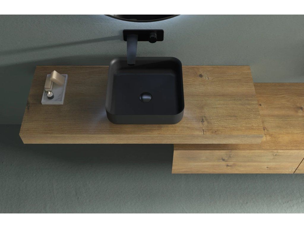 CERANO - Umywalka z marmuru odlewanego Viva - blat - czarny mat - 40x40 cm