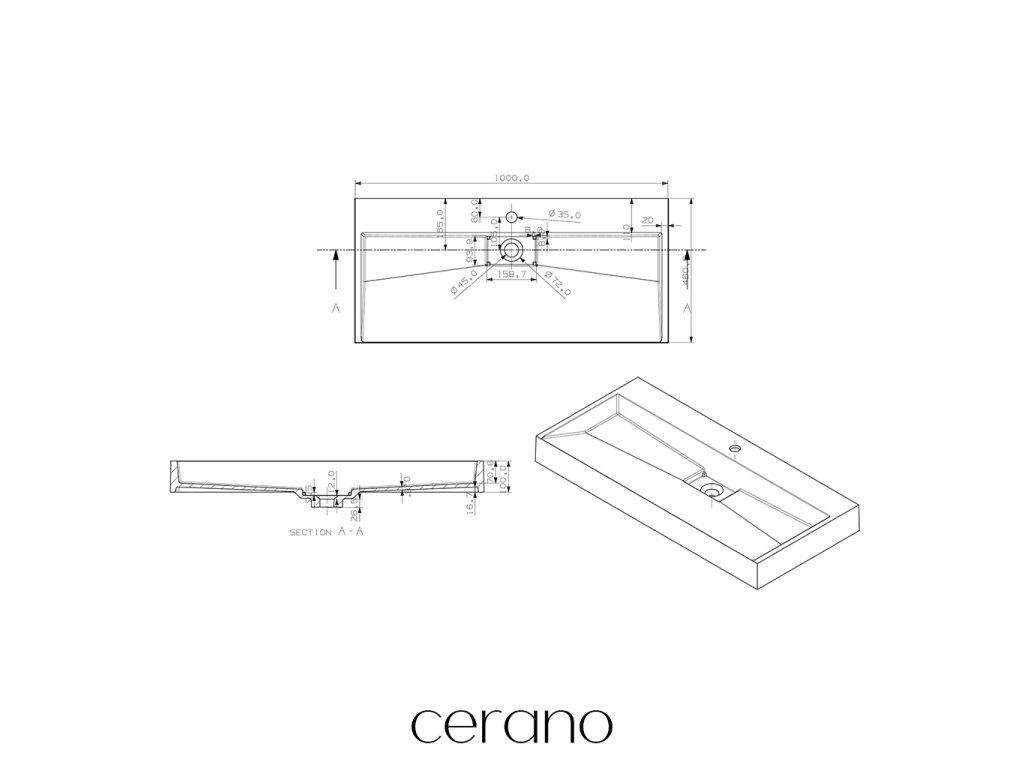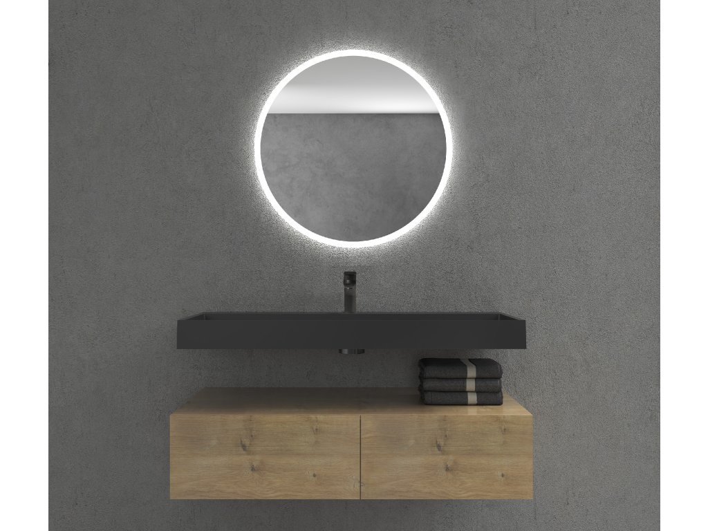 CERANO - Umywalka z marmuru Vita - ścienna i nablatowa - otwór na baterię - matowa czerń - 100x46 cm