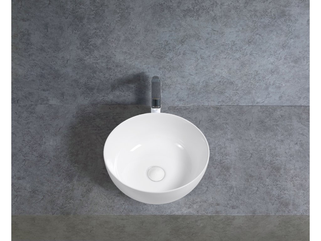 CERANO - Zlew ceramiczny Elio - nablatowy - biały połysk - Ø 36 cm