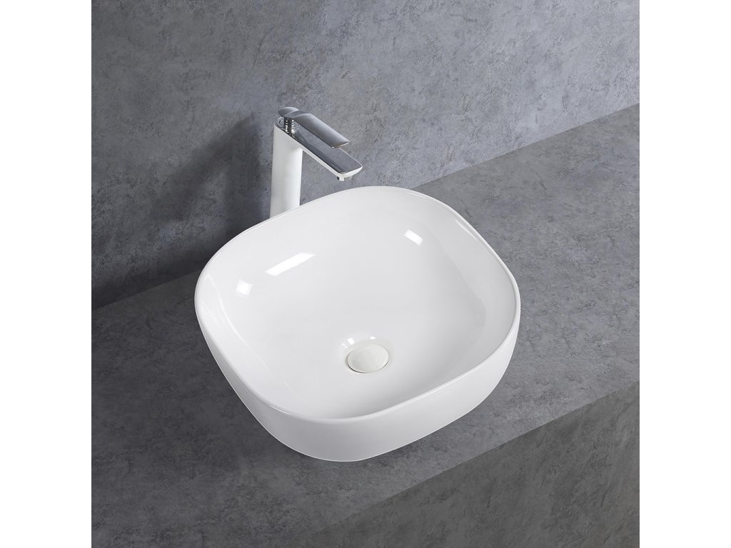 CERANO - Zlew ceramiczny Sano - blatowy - biały połysk - 42,5x42,5 cm
