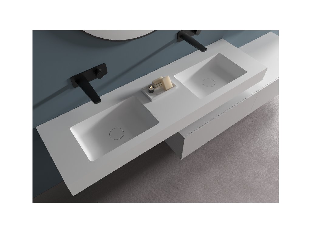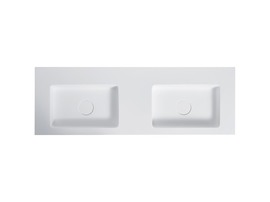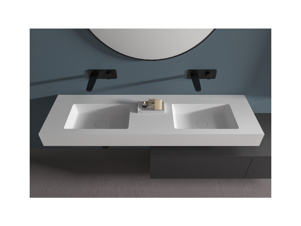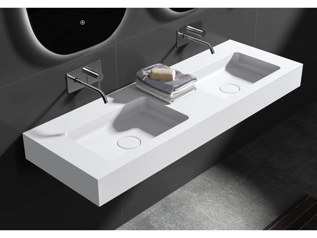 CERANO - Umywalka ścienna Geminia z odlewanego marmuru - biała matowa - 163x45 cm
