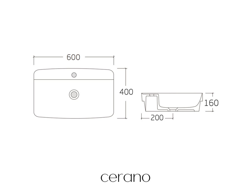 CERANO - Umywalka ceramiczna - półwpuszczana - Vortico - połysk biały - 60x40 cm
