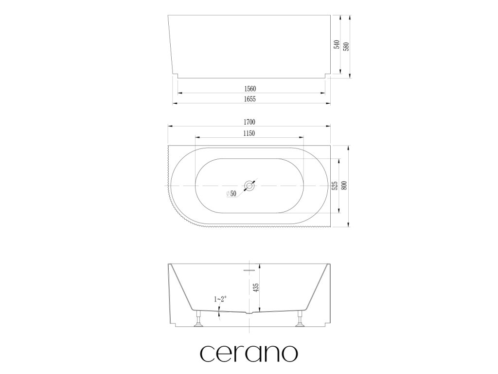 CERANO - Wanna akrylowa wolnostojąca Aira, prawa - biała połysk - 170x80 cm