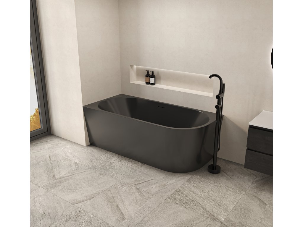 CERANO - Wanna akrylowa wolnostojąca Bianco prawa - czarny mat - 170x80 cm