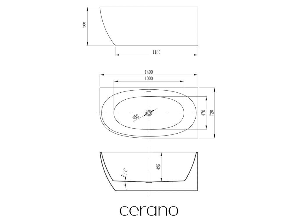 CERANO - Wanna akrylowa wolnostojąca Livia, prawa - biała połysk - 140x70 cm