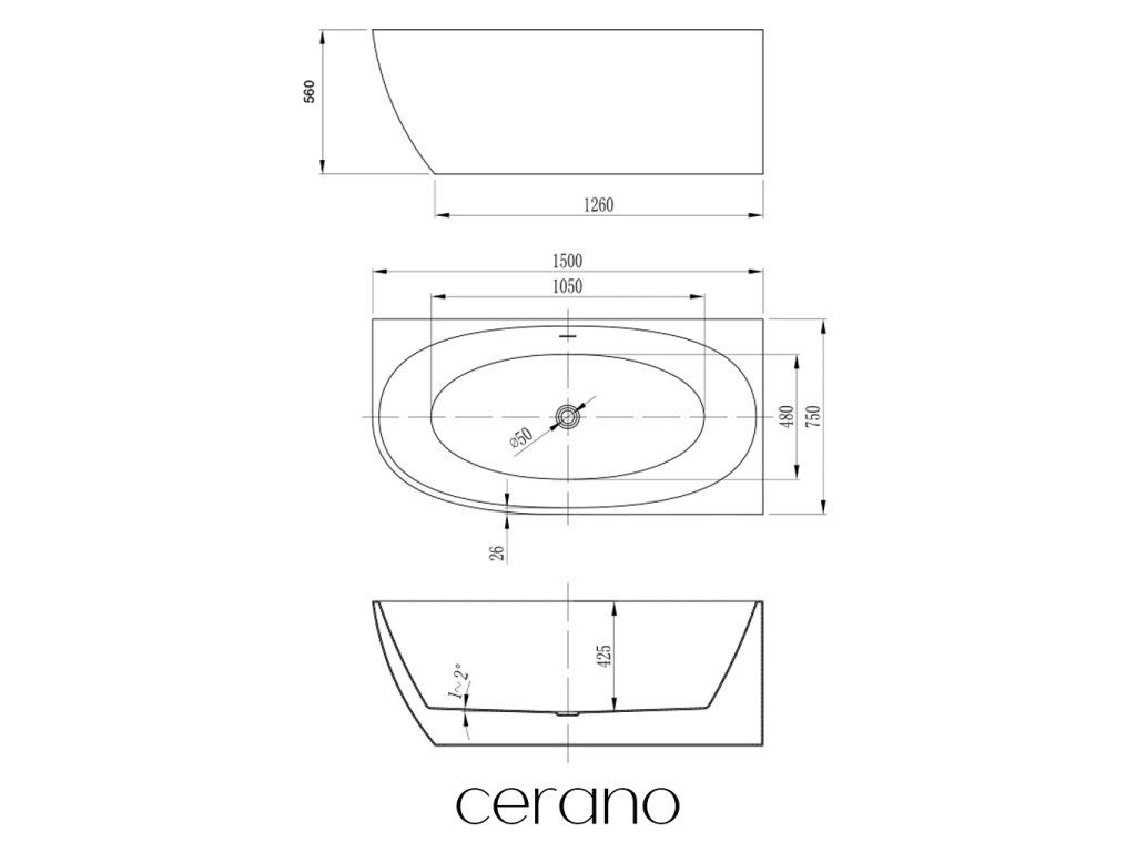CERANO - Wanna akrylowa wolnostojąca Livia, prawa - biała połysk - 150x75 cm