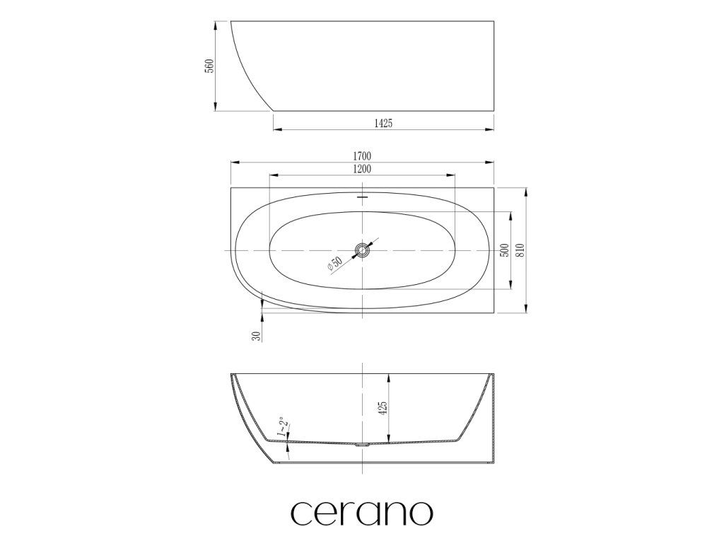 CERANO - Wanna akrylowa wolnostojąca Livia, prawa - biała połysk - 170x81 cm