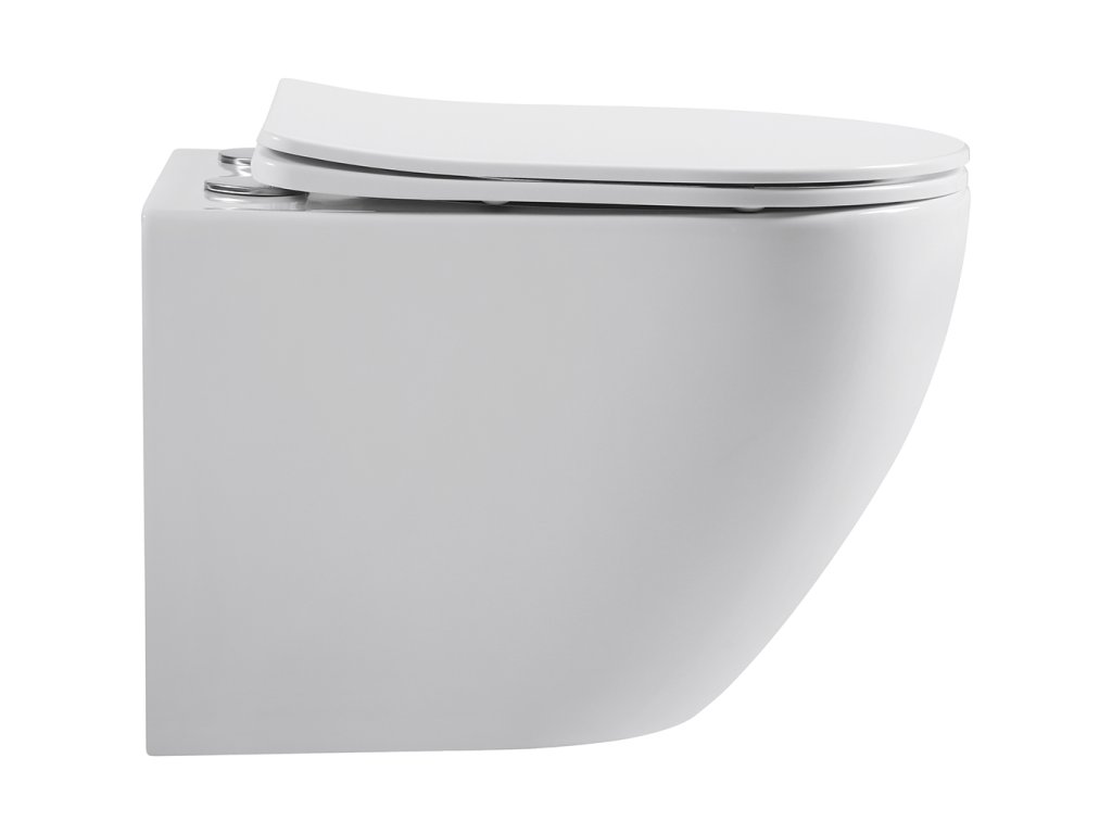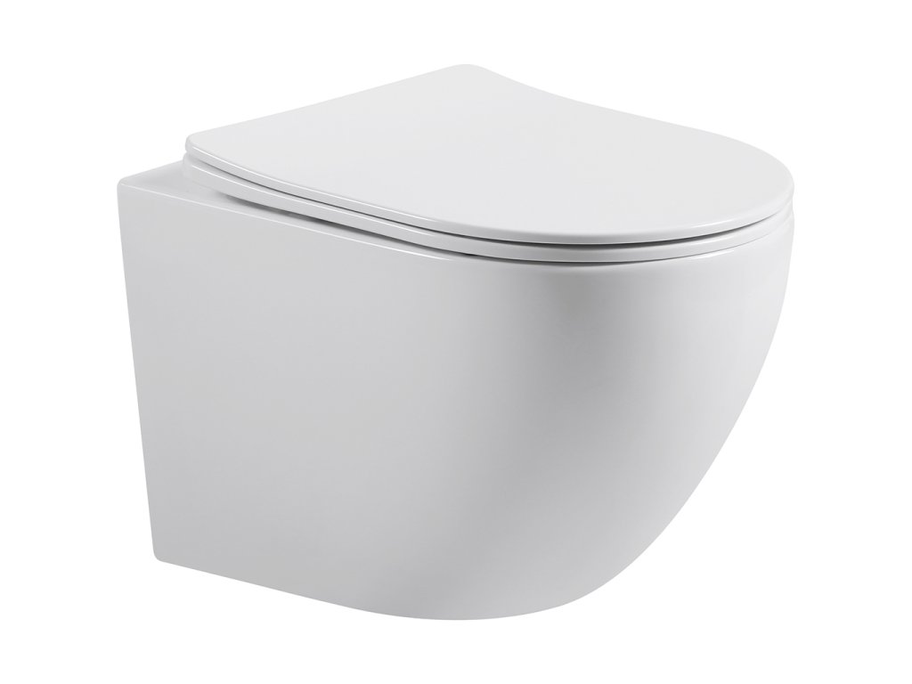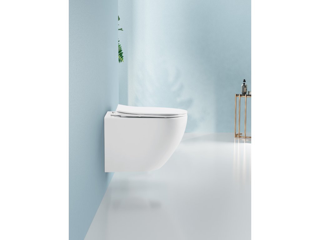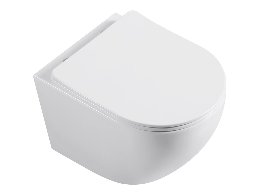 CERANO - podwieszana toaleta Cesso, Vortex Rimless + deska Slim/UF - połysk biały - 49x36 cm