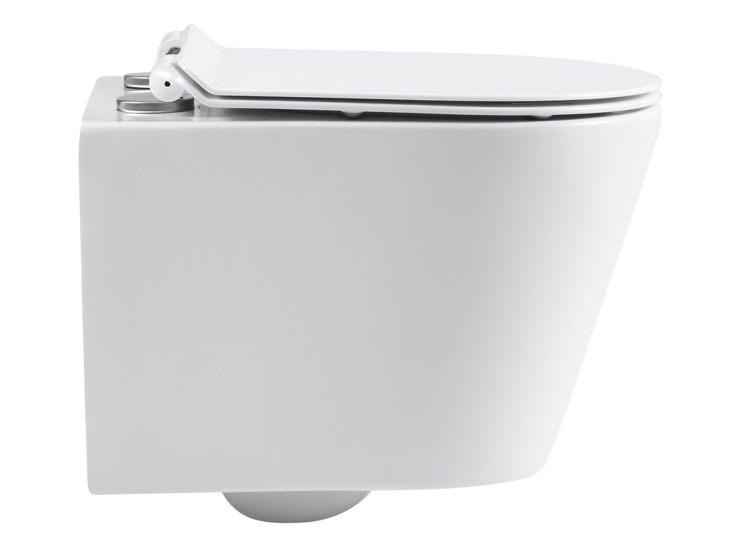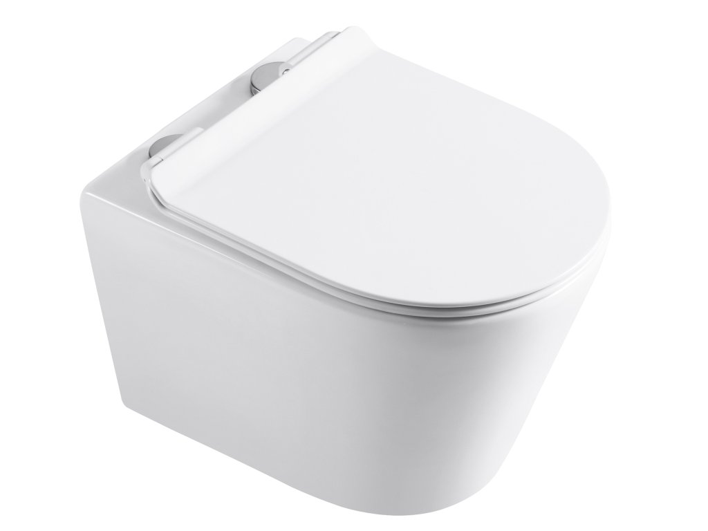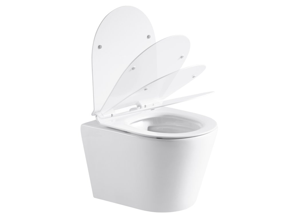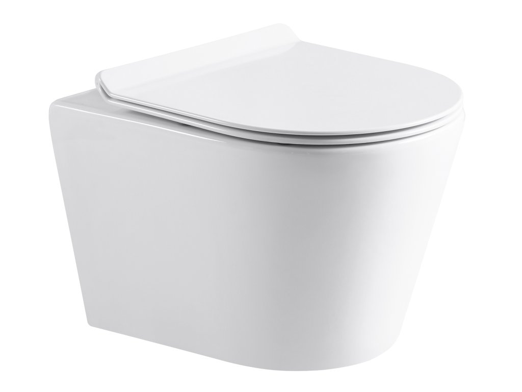 CERANO - WC wiszące Norbi, Rimless + deska Slim/UF - połysk biały - 48,5 x 36,5 cm