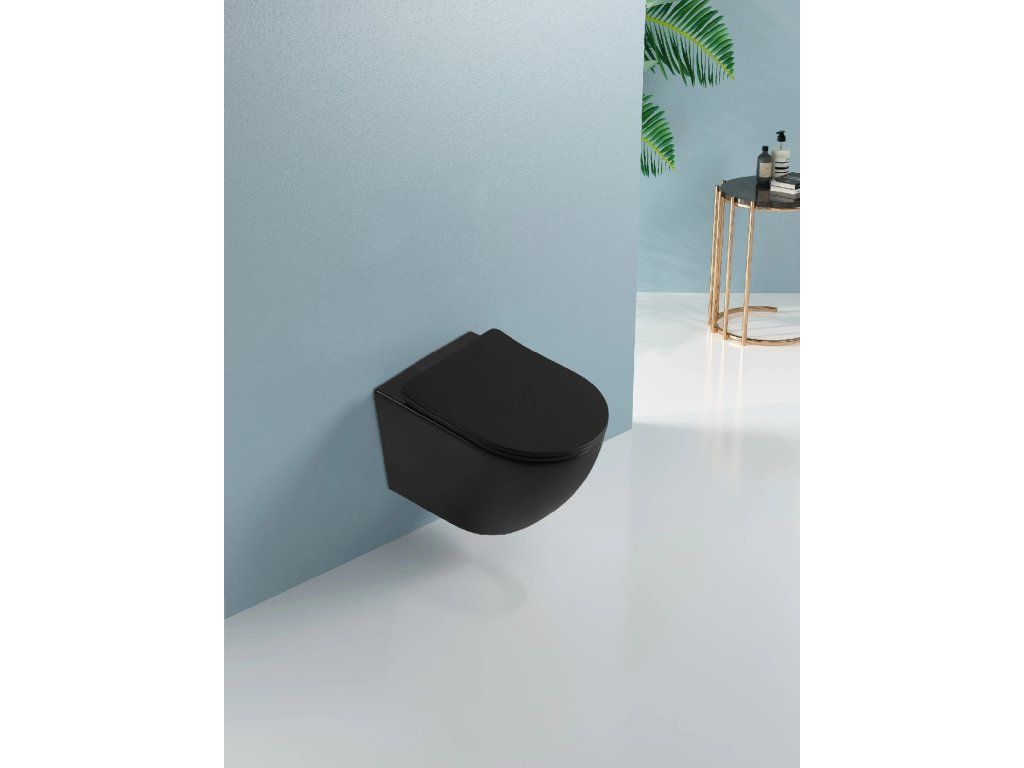 CERANO - WC wiszące Verde, bezkołnierzowe + deska Slim/UF - czarny mat - 49x36 cm